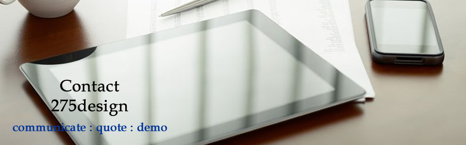 | communicate Call us at 330-441-7300 or send us an email at sales@275design.com quote Once you contact us and give us details on your project, we can present you with a detailed quote. From there we can adjust anything needed to get you within your budget. demo We can also present you with a no-obligation demo of a design so you can see our work before committing. We will also make productive suggestions to further enhance your web presence. |